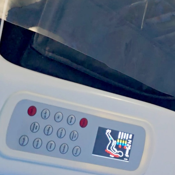 La versión orgánica se diferencia por incorporar un arco de agua que actúa de forma simultánea con el masaje de espalda y la presoterapia (40 minutos)