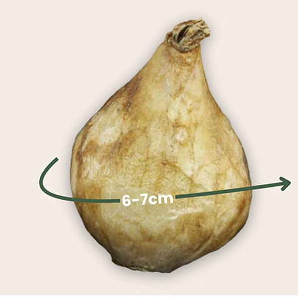 - Los bulbos tienen una circunferencia de aproximadamente 7-8 cm al recibirlos.