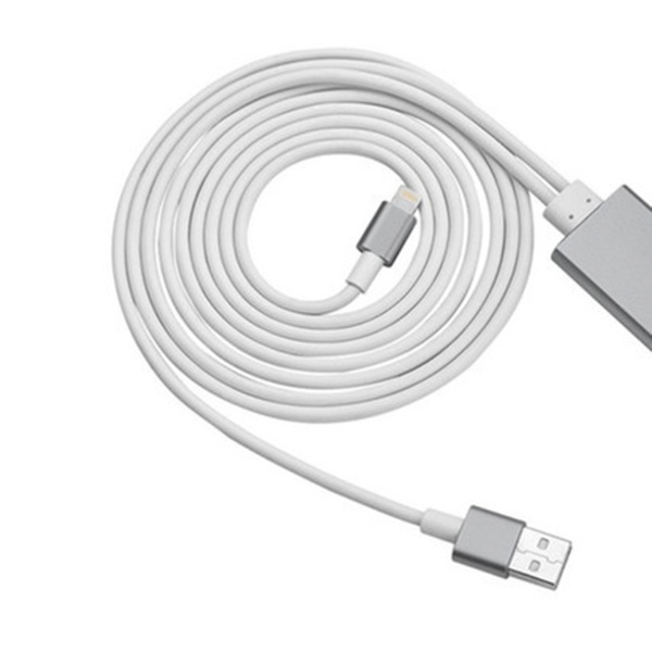 Un cable que funciona como adaptador HDTV para dispositivos iPhone o iPad con conector Lightning®
