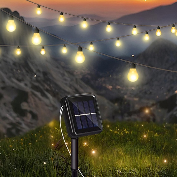 Cadena de luces solares para exteriores 10 bombillas LED con panel solar y carga USB-C