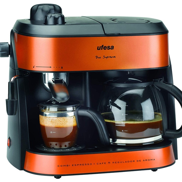 Cafetera espresso de hidropresión con interruptor on/off con piloto luminoso, vaporizador orientable turbo y regulador de aroma