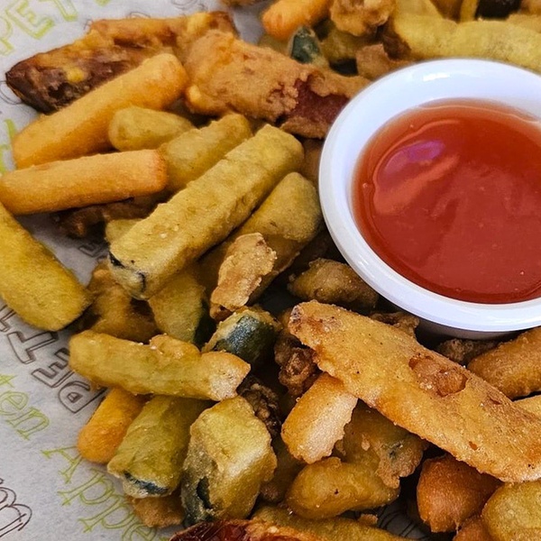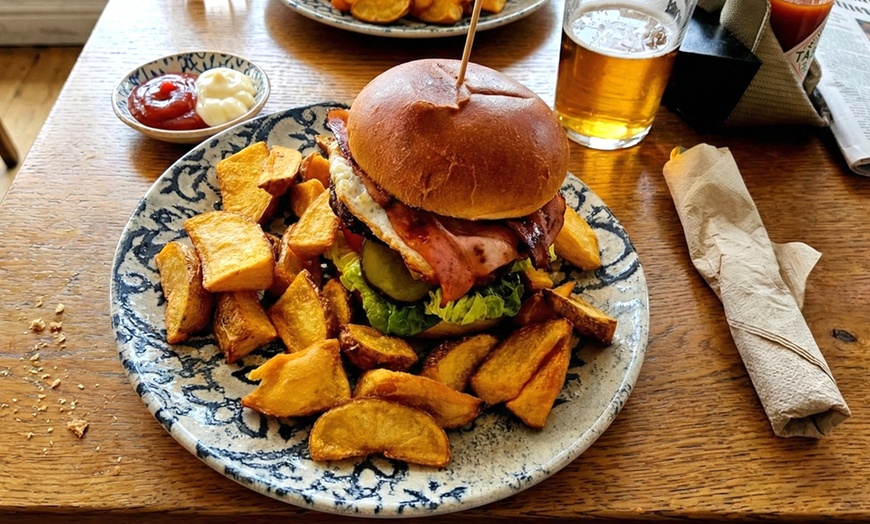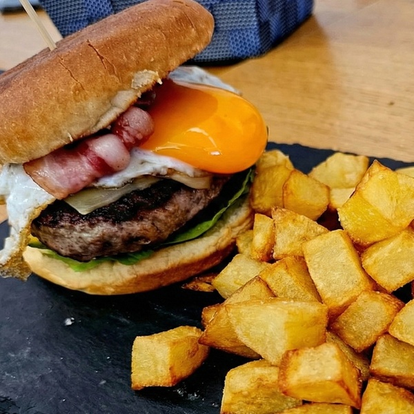 - Hamburguesa Smash: doble de carne de buey, bacon, queso acompañada de patatas