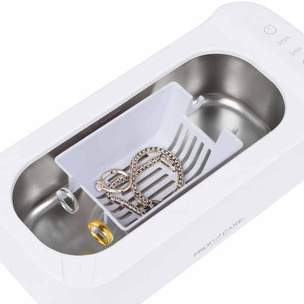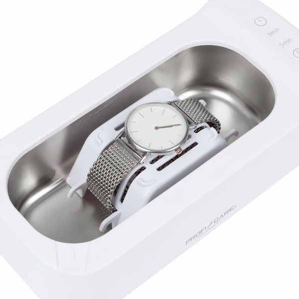Presenta un recipiente de acero inoxidable que garantiza una limpieza profunda y suave, perfecto para relojes y joyas