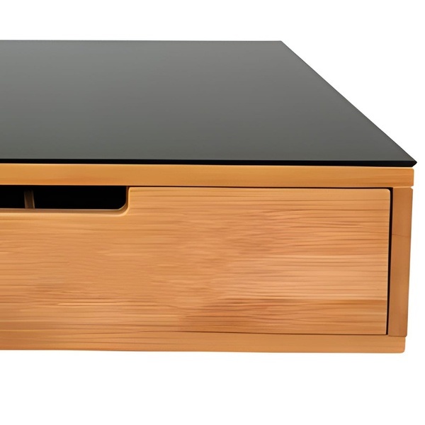 - Materiales: fabricado en bambú natural y cristal templado transparente de color negro