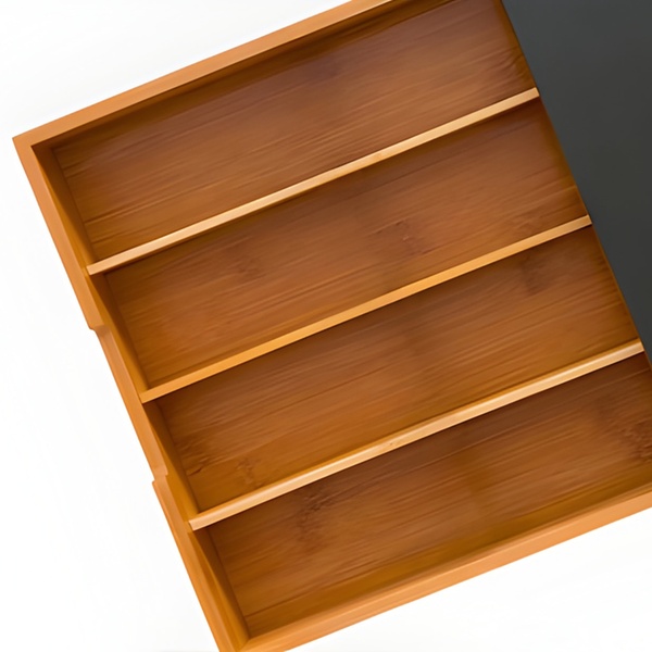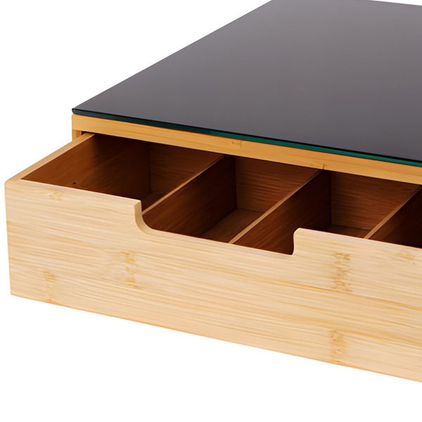 Groupon ofrece este cajón organizador de bambú y cristal templado con 4 compartimentos, vendido por Zamika Store srl.
