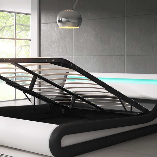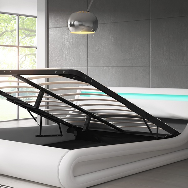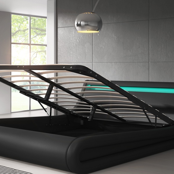 Una cama con canapé y somier de láminas, ideal para colchones de hasta 25 cm de altura