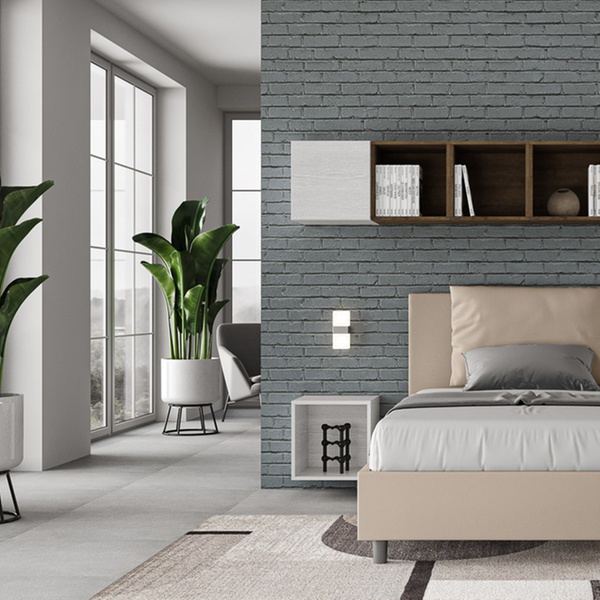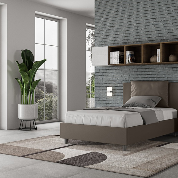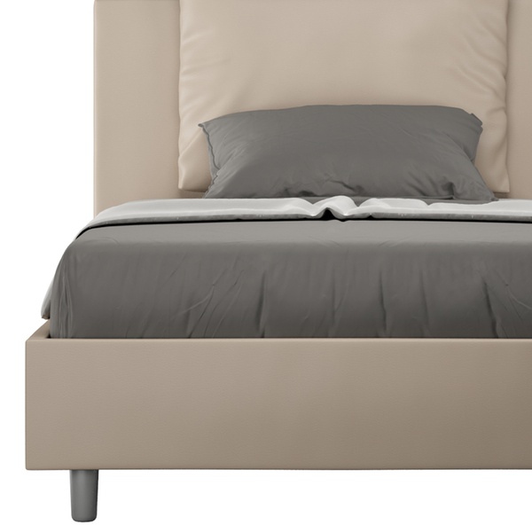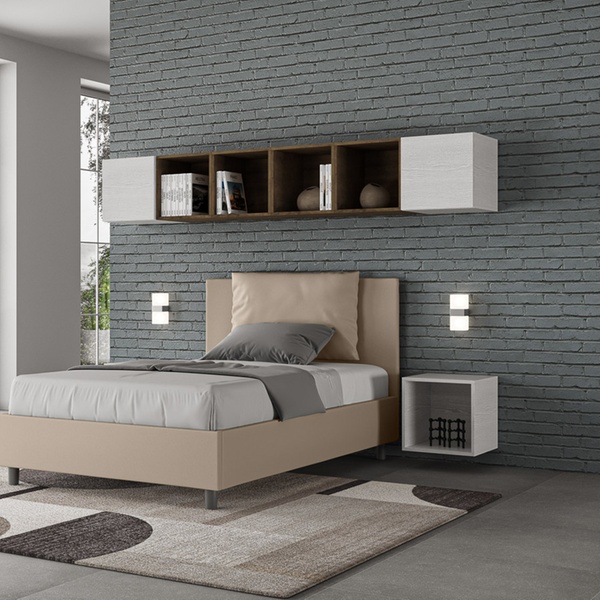 Fabricada en Italia y caracterizada por un cojín de cabecera tapizado en polipiel, esta cama ha sido diseñada para el descanso nocturno