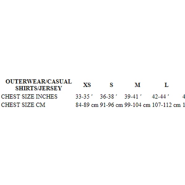 | Tamaño | Pecho (cm) | Pecho (in) |