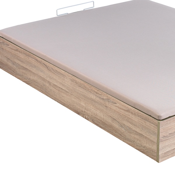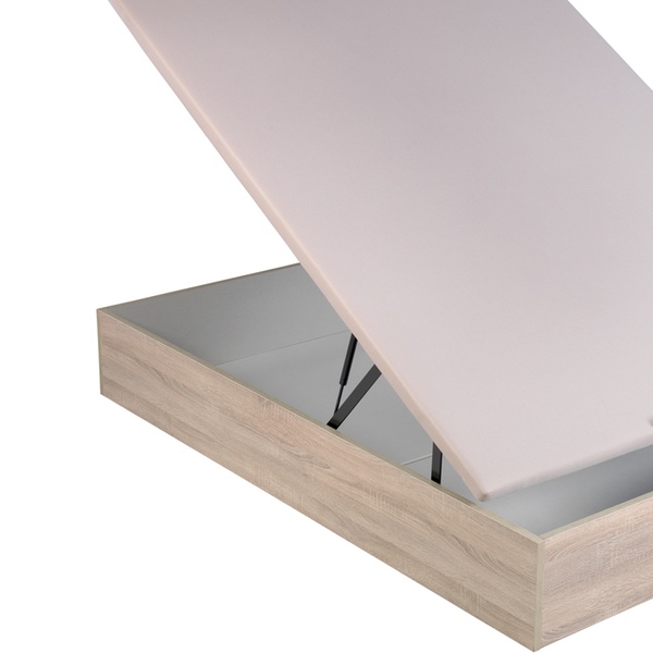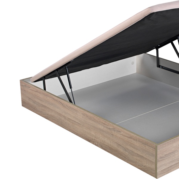 Este canapé abatible destaca por su amplia capacidad de almacenamiento y su fácil apertura con pistones hidráulicos