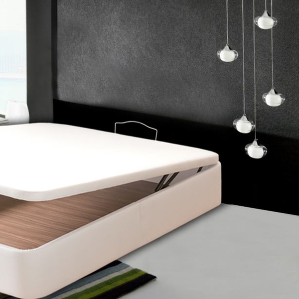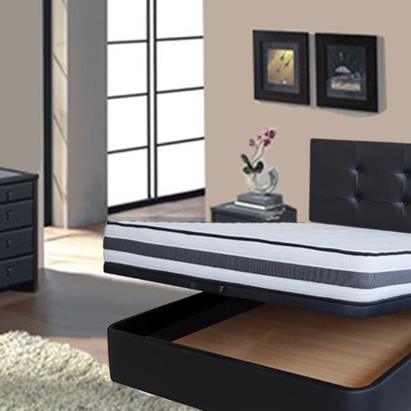 Canapé fabricado en España con estructura de madera, cajón tapizado en polipiel y tapa tapizada en rejilla para una mayor transpiración