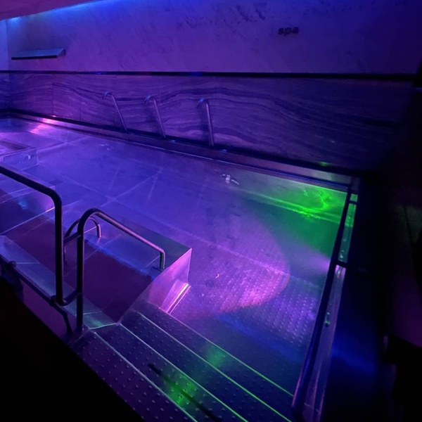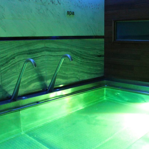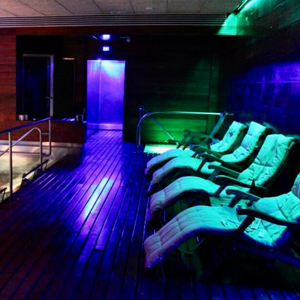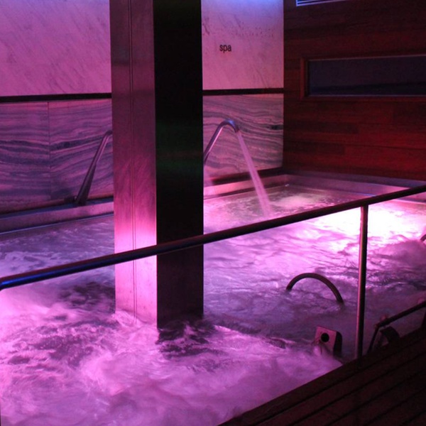 ღ Zona wellness con una bañera de hidromasaje grande, con diferentes chorros y pulsadores, diferentes piletas y diferentes tipos de duchas, donde también se puede disfrutar del gran hammam y la sauna como complemento ideal