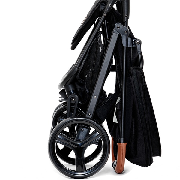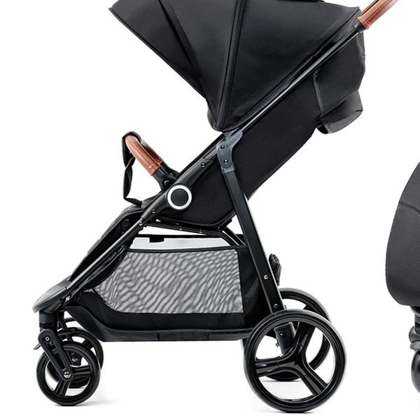 Una silla de paseo válida hasta 15 kg de peso, con ruedas de EVA y manillar con acabo en ecopiel