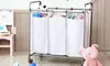 Carrito de lavandería con 4 ruedas giratorias y 3 compartimentos de tela gris