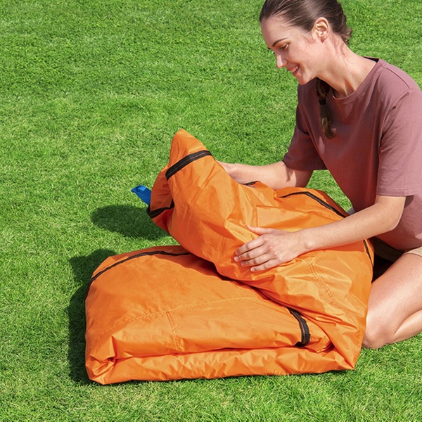 - Contenido: 1 hamaca, 1 soplador (estacas incluidas), 1 kit de reparación (parche variados), 1 bolsa de almacenamiento y 8 estacas de hamaca