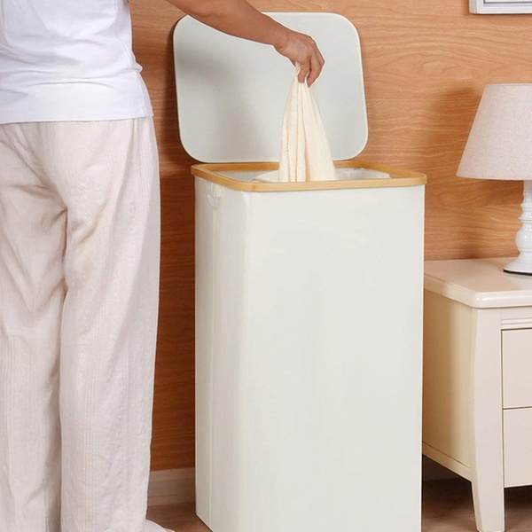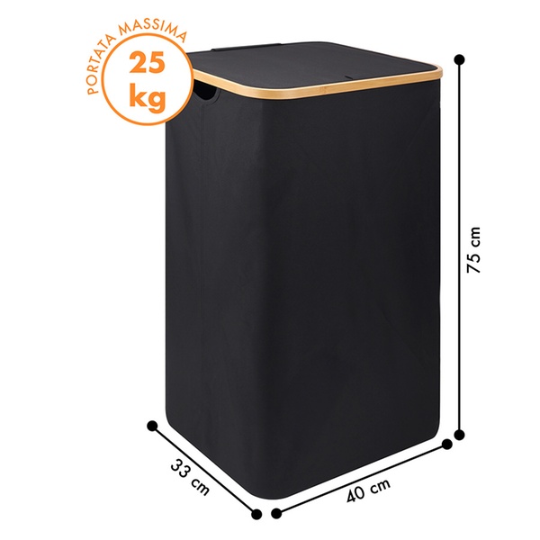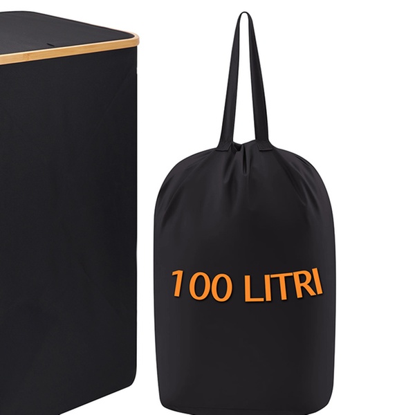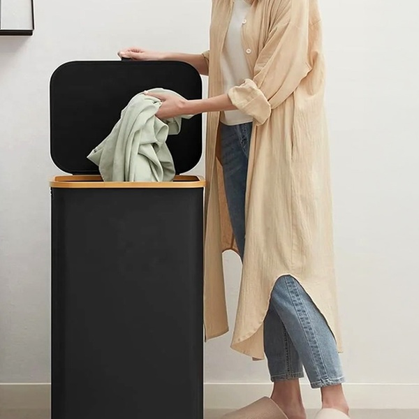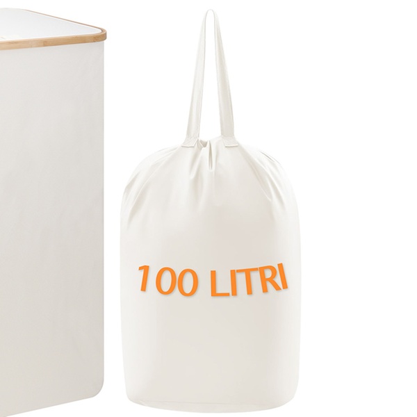 Con una capacidad de 100 litros para poder albergar la ropa sucia, este cesto presenta un diseño elegante y moderno que se adapta a cualquier espacio