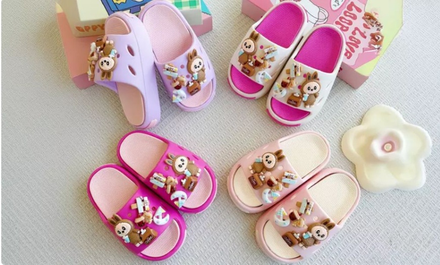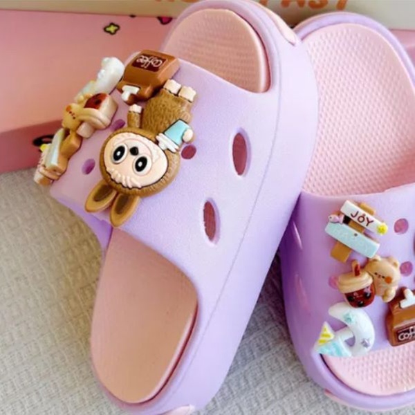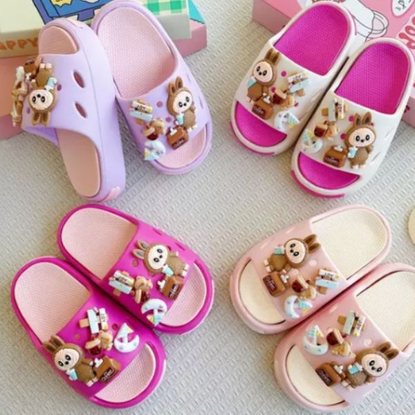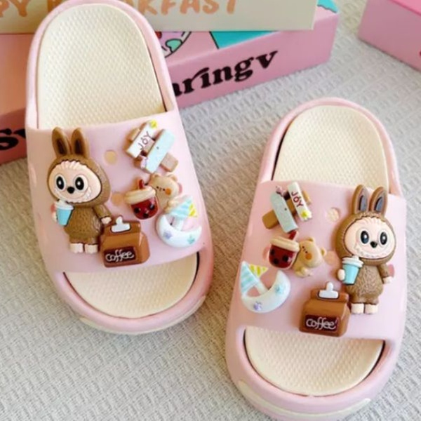 Claquetas infantiles tipo slip-on con diseño adorable inspirado en Labubu