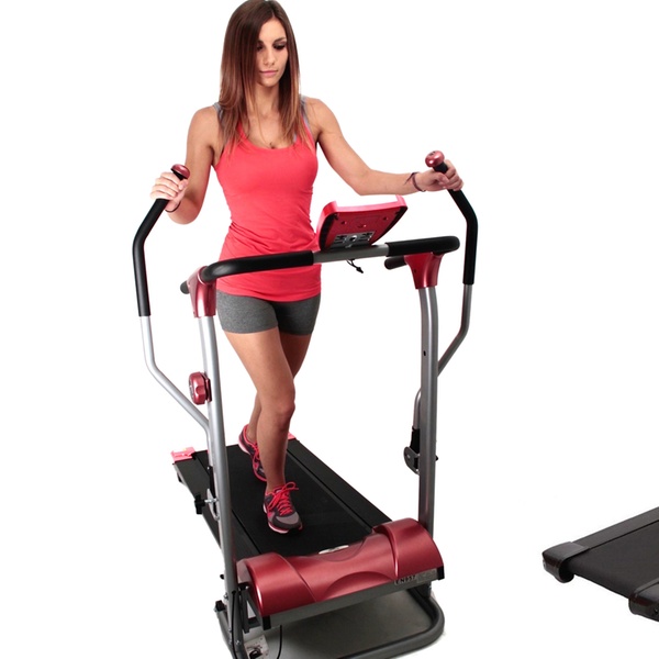 Con un diseño plegable y ligero, esta cinta para caminar es ideal para entrenar en casa y se puede guardar en espacios reducidos