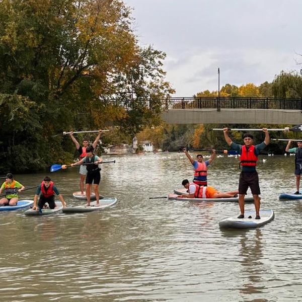 La actividad tiene una duración de 2 horas y media donde, al empezar, recibirás un pequeño curso básico de iniciación al paddle sup, enseñándote las técnicas para remar y coordinar, así como una introducción a la ruta que vas a hacer. Después, comenzará la ruta guiada con el monitor, visitando el Restaurante el Rana Verde y después el Palacio Real, dónde harán una pequeña parada de 10 minutos. La ruta continuará y se irá enseñando un poco sobre la fauna y flora del río, así como elementos históricos de la ruta hasta completar las 2 horas y media. La actividad incluye monitor especializado y guía, con el paddle sup, remos, chalecos y bote estanco para los móviles.