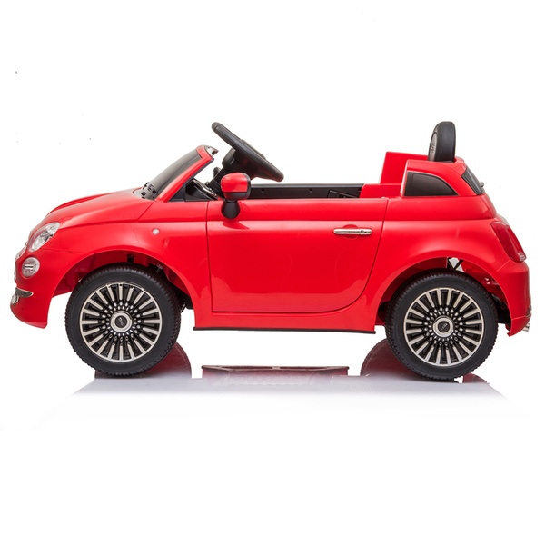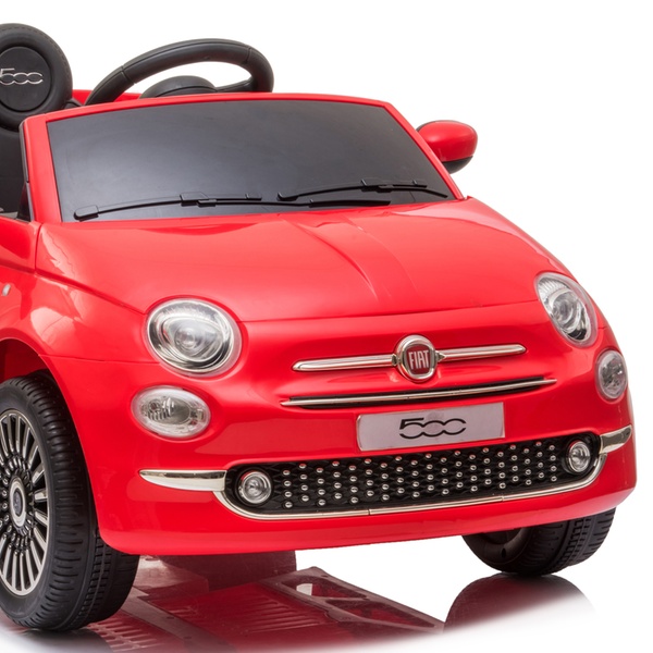 Con luces LED delanteras y traseras, este Fiat 500 Red 12V brinda una experiencia de conducción emocionante y segura para los pequeños.