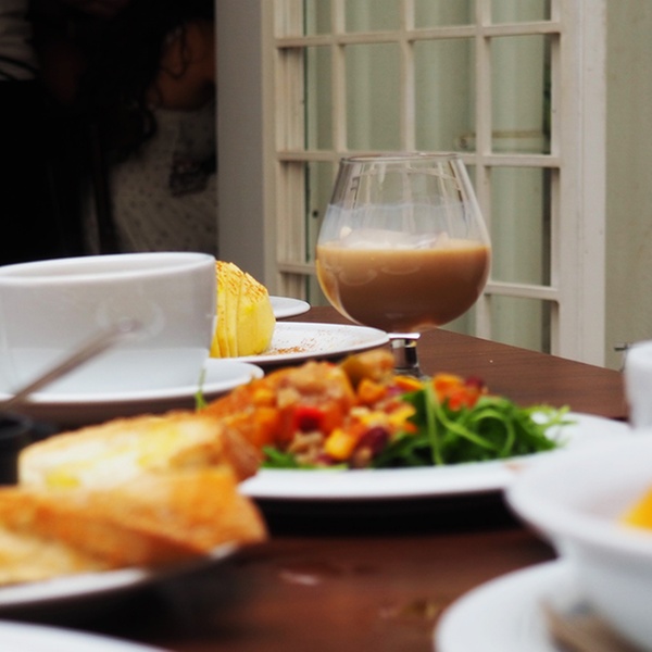 Brunch o merienda para 2 o 4 personas con 1 plato salado, 1 plato dulce, 1 bebida caliente y 1 bebida fría