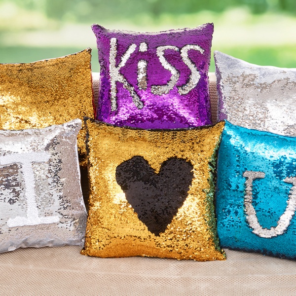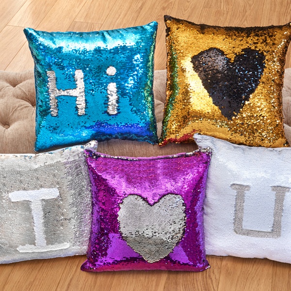 Unos cojines con funda de lentejuelas, ideales para alegrar cualquier estancia