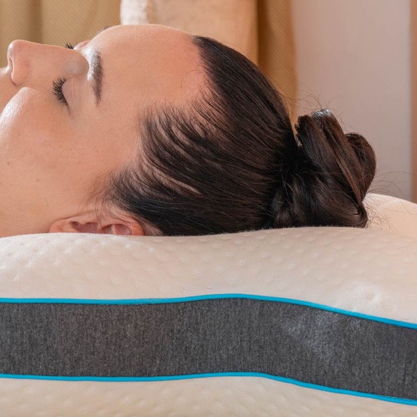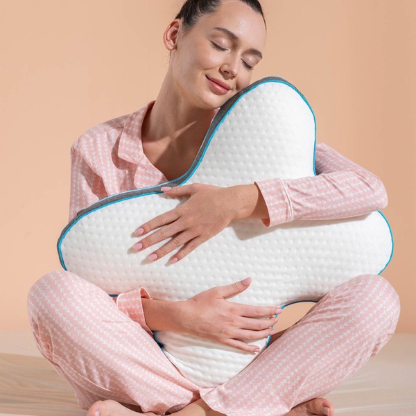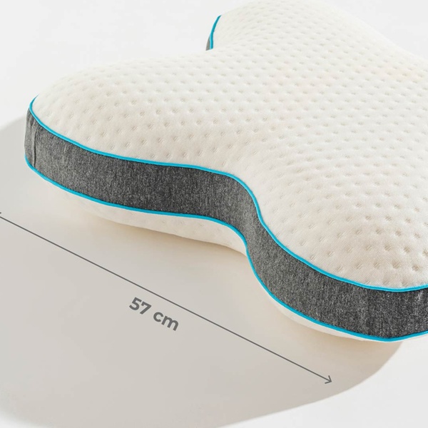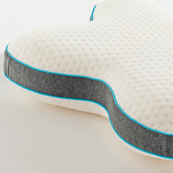 Diseñado con forma de mariposa, este cojín ayuda a alinear cabeza, cuello y hombros para un descanso reparador