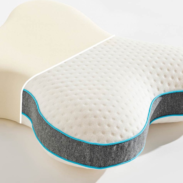 - Diseño ergonómico tipo mariposa: la almohada cervical de espuma viscoelástica sostiene de forma natural la cabeza, el cuello y los hombros, manteniendo la columna alineada y reduciendo el dolor cervical y la tensión muscular.
