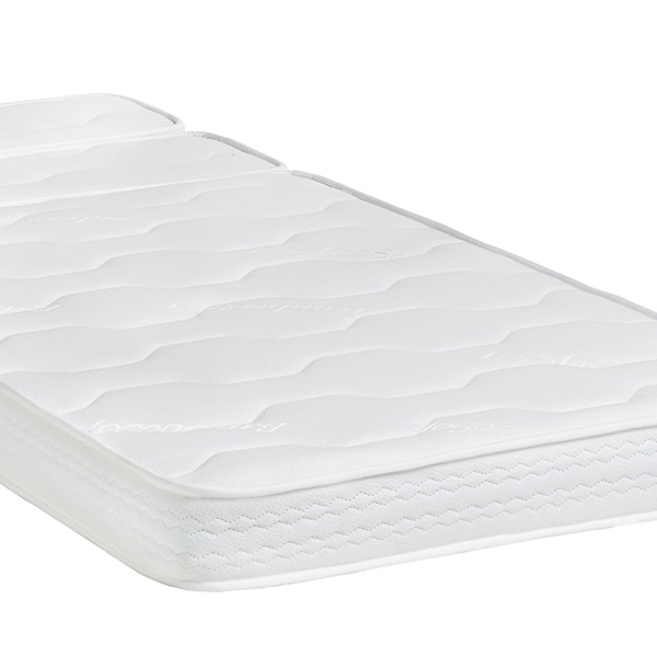 - Tapa inferior: tela Strech acolchada con 1 cm de espuma perfilada de alta transpiración y confort progresivo y 150 g de fibra poliéster antiácaros.