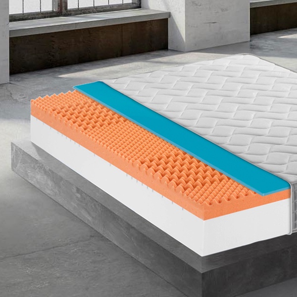 Kurama ofrece un colchón ortopédico de espuma viscoelástica con gel y 13 zonas que optimiza la postura, reduce la presión y mejora la circulación. Fabricado en Italia con materiales hipoalergénicos, transpirable y certificado para máxima calidad y durabilidad