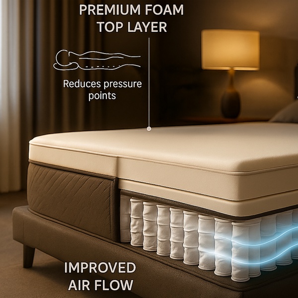 - Aislamiento de movimiento: diseñado para garantizar un sueño sin interrupciones para dos personas, evitando que se perciban los movimientos de la pareja.