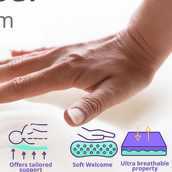- Espuma viscoelástica enriquecida con Cooling Gel combinada con microcirculación de aire, que mantiene un sueño saludable y fresco durante todo el año.
