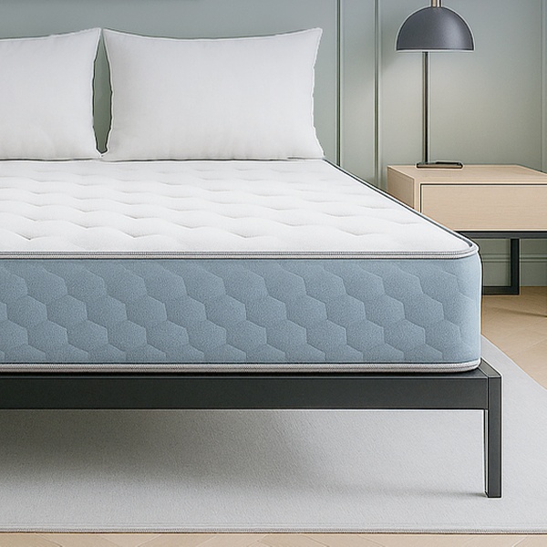 Colchón ortopédico de 22 cm que combina espuma viscoelástica de 9 zonas y base de agua, ofrece soporte preciso, frescura constante y revestimiento hipoalergénico, con asas laterales, fácil mantenimiento y certificación como dispositivo médico de clase 1