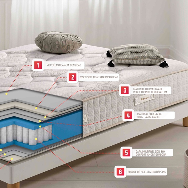 Un colchón de viscoelástica y muelles ensacados con soporte ergonómico y anatómico