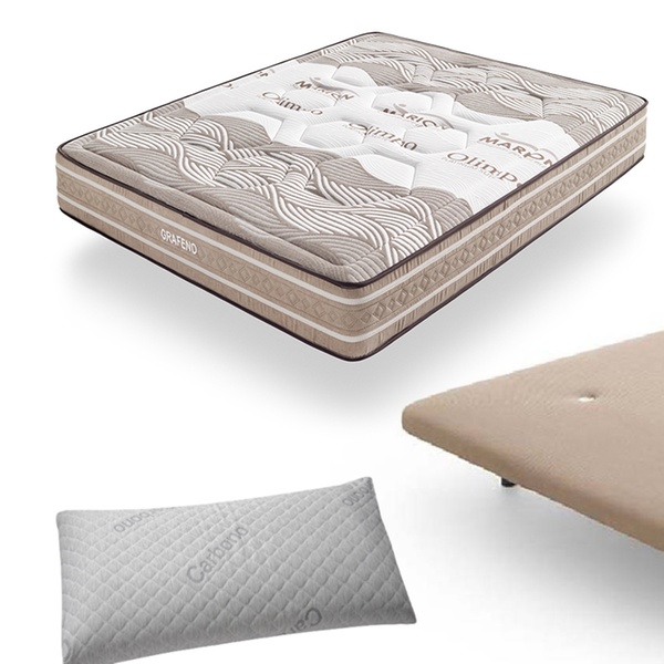 Este pack de colchón, base tapizada y almohada está diseñado para proporcionar un confort de alta gama
