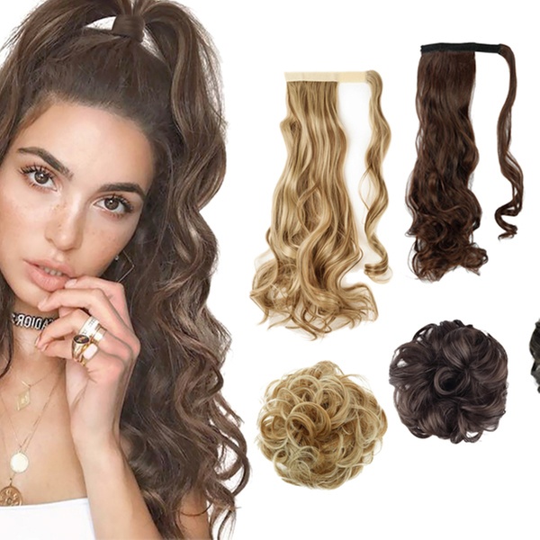 - Extensiones de pelo sintético en forma de coleta o moño