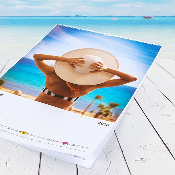 El calendario consta de 13 hojas encuadernadas en espiral y con gancho para colgar (1 página por mes y 1 portada)