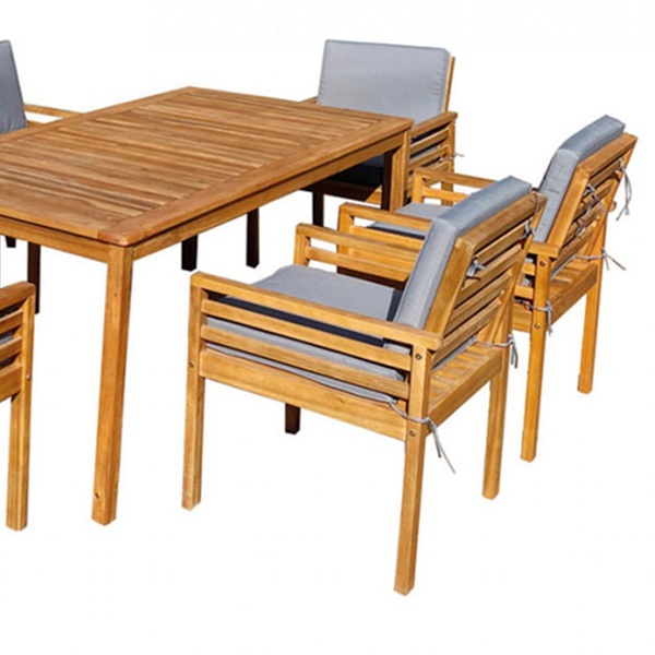 - Conjunto de comedor de exterior con mesa y 6 sillas con cojines