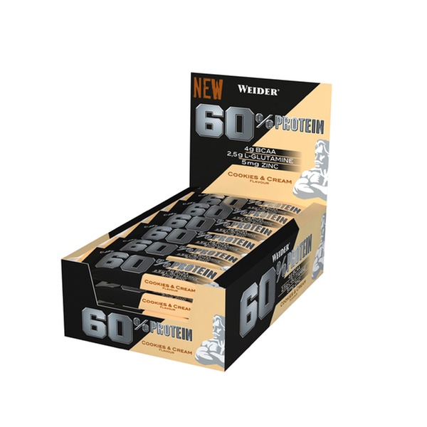 Ingredientes: proteínas de leche¹ (aislado de proteína de leche¹, caseinato cálcico¹, aislado de proteína de suero de leche¹), hidrolizado de proteína de colágeno, humectante: E422; manteca de cacao, L-glutamina, edulcorante: E965; pasta de cacao, aroma (aroma de cookies & cream), aislado de proteína de soja, 0,4% L-leucina, sal, emulgente: E322 (soja); 0,2% L-isoleucina, almidón de tapioca, cacao en polvo (theobroma cacao L.), gluconato de zinc, edulcorante: E955; 0,01% L-valina. ¹ Contiene leche y lactosa