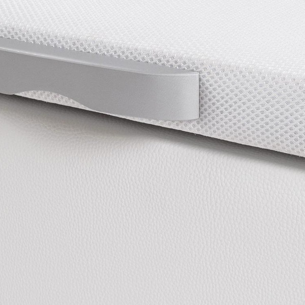 - Tapa del canapé en madera con refuerzo en acero inoxidable de primera calidad y tapizada con tejido transpirable 100% de material 3D ( tejido con multitud de hilos entrelazados con efecto rejilla para permitir el paso del aire y garantizar la transpiración del colchón ) de color a juego con el cuerpo del canapé