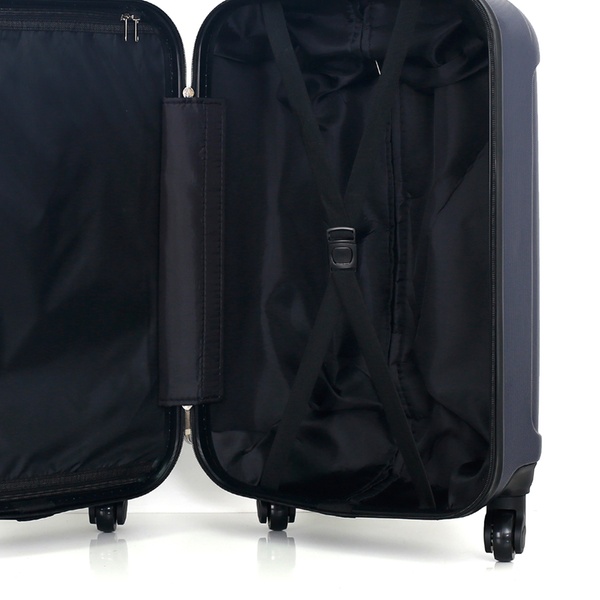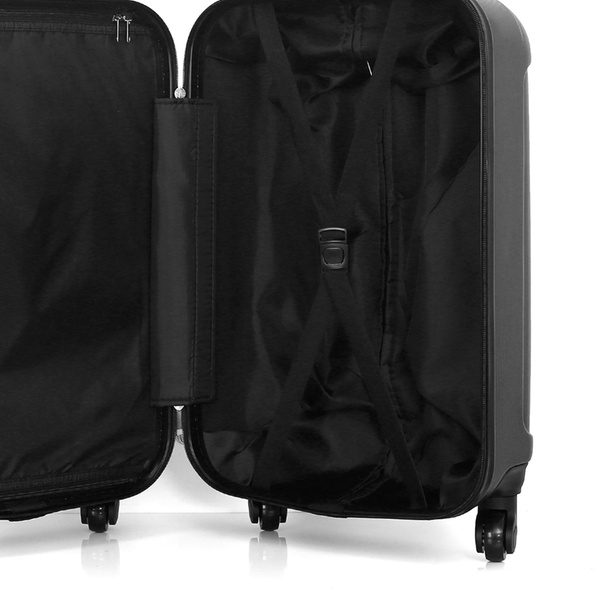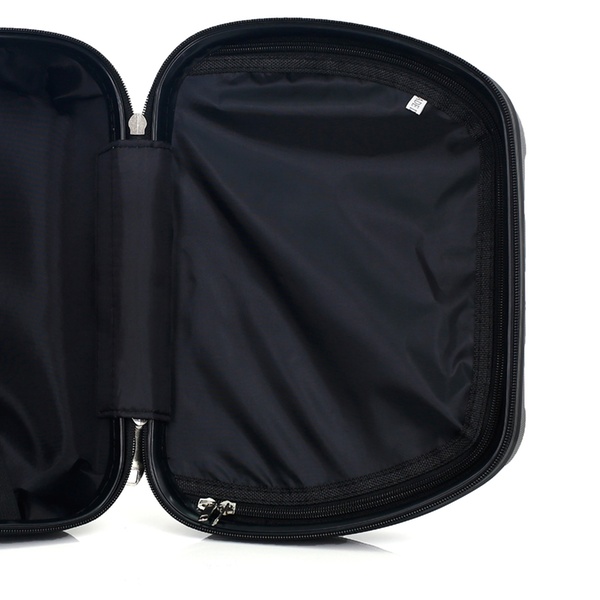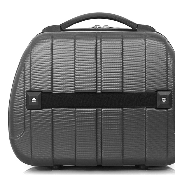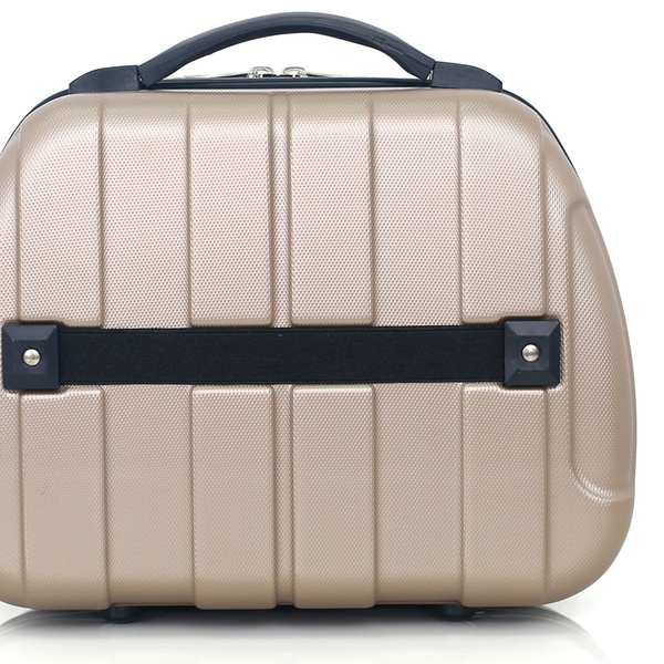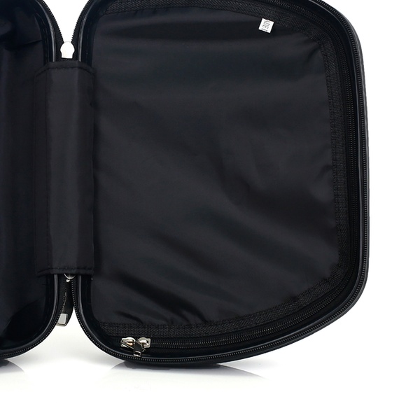 - Correa elástica en la espalda, compatible con el trolley, que permite acoplar el Vanity a otra maleta