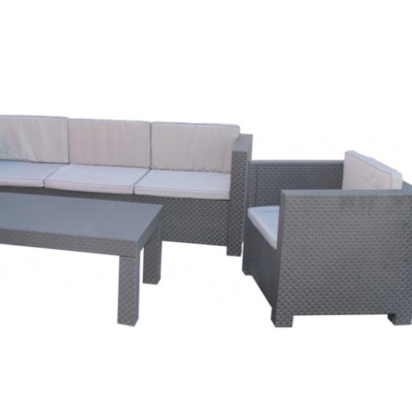 - Incorpora un sofá de 3 plazas, 2 sofás individuales y una mesa auxiliar