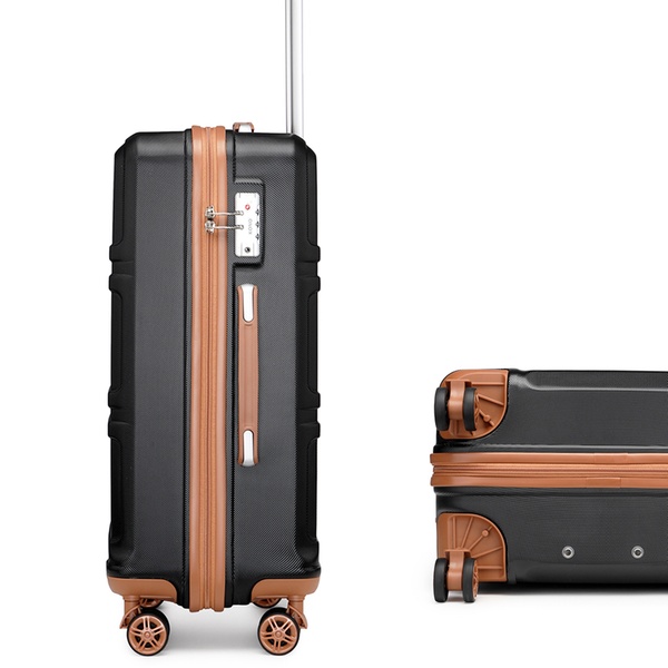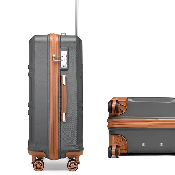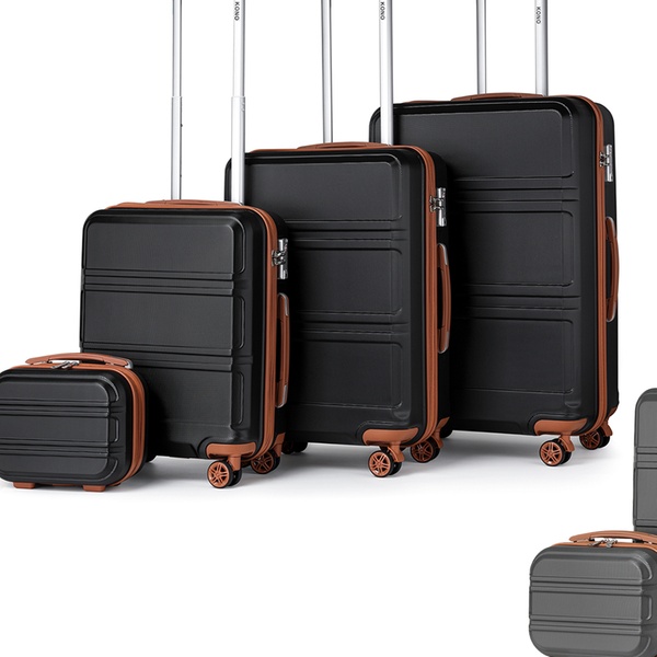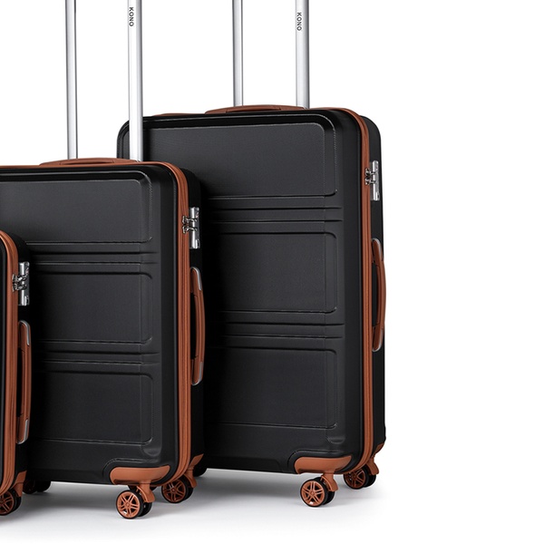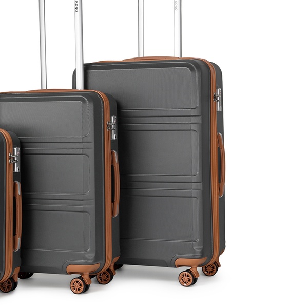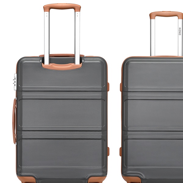 Presentamos el juego de maletas Kono; con material duradero de ABS, cerraduras aprobadas por la TSA, ruedas giratorias de 360° y múltiples asas para viajar fácilmente