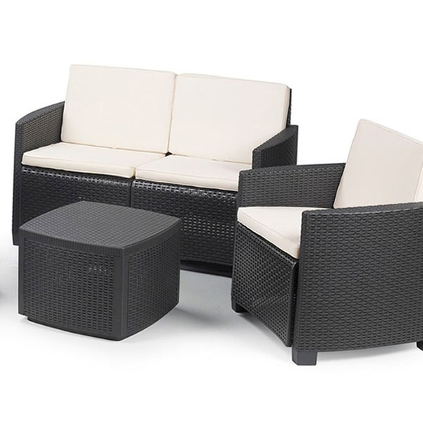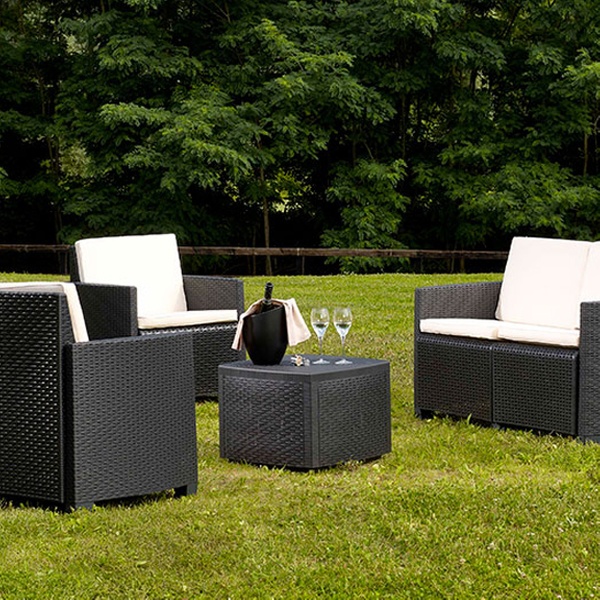 - Fabricado en su totalidad con resina de color antracita, una textura muy similar al ratán