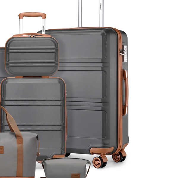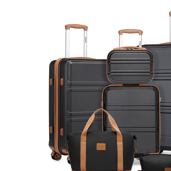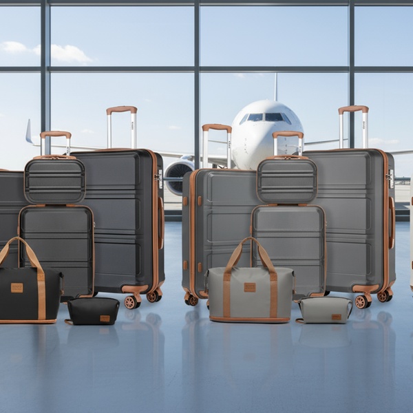 Viaja con estilo y comodidad con este conjunto de equipaje compuesto por maletas rígidas con ruedas giratorias 360°, una bolsa de tela impermeable y un neceser