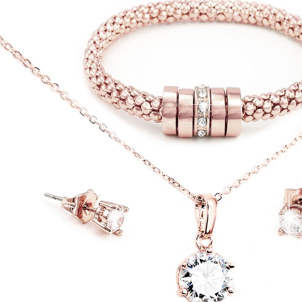 Completa tu look para salir o para fiestas con este conjunto de 3 piezas con colgante, pulsera y pendientes a juego