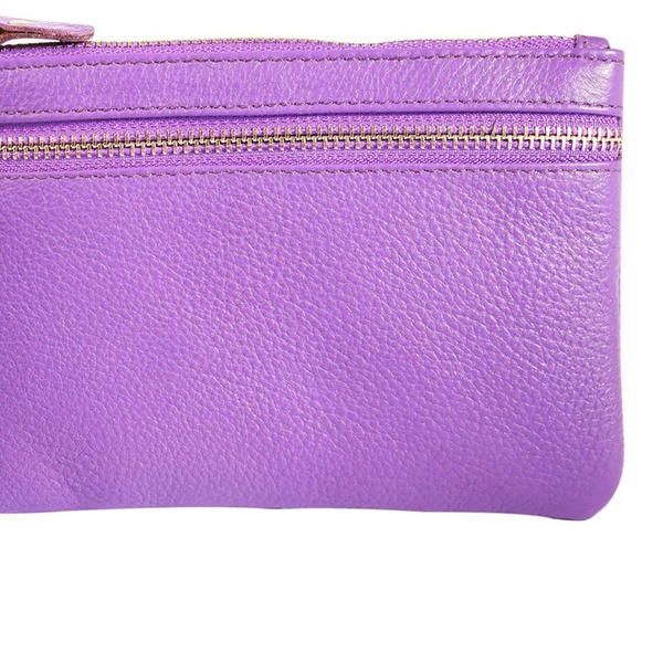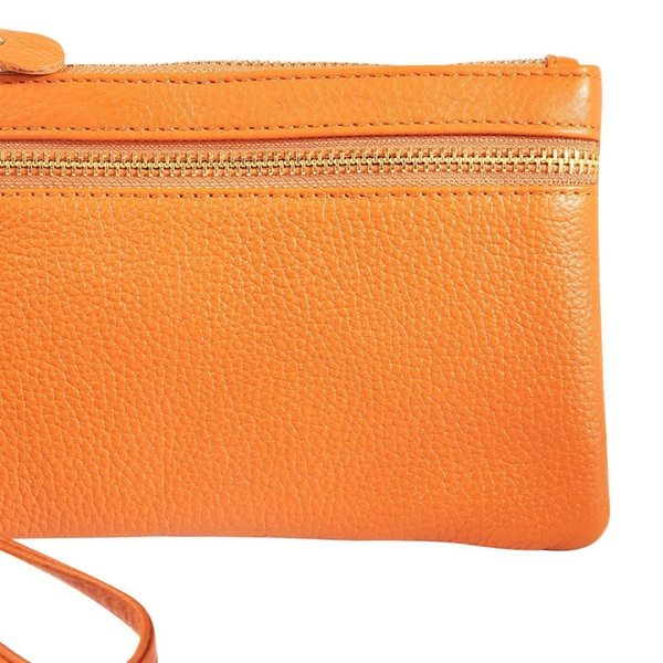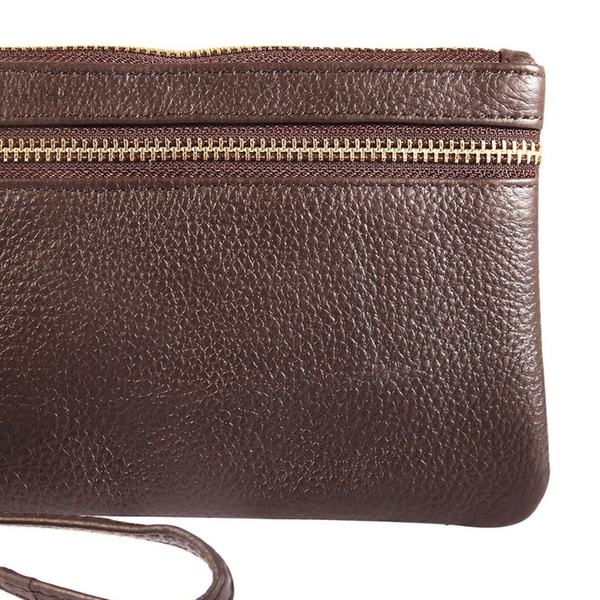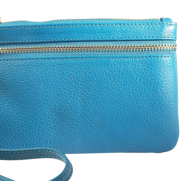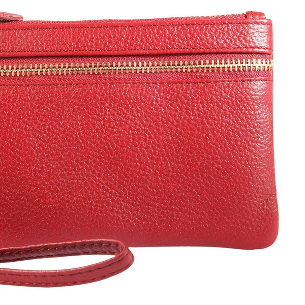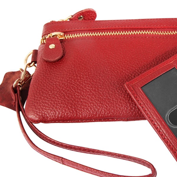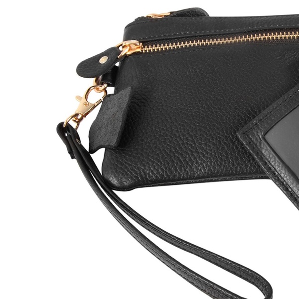 • La cartera de mano tiene: 2 compartimentos con cremallera, correa de muñeca desmontable (17 cm)