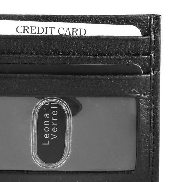 • El portadocumentos tiene: múltiples ranuras para tarjetas, 1 ventana de identificación transparente