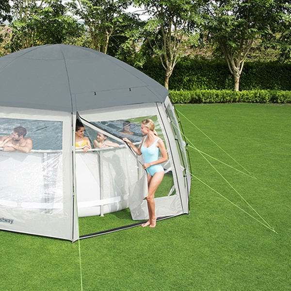 Esta cúpula para piscinas redondas o jacuzzis está diseñada para proporcionar privacidad y proteger de la lluvia o de los rayos UV
