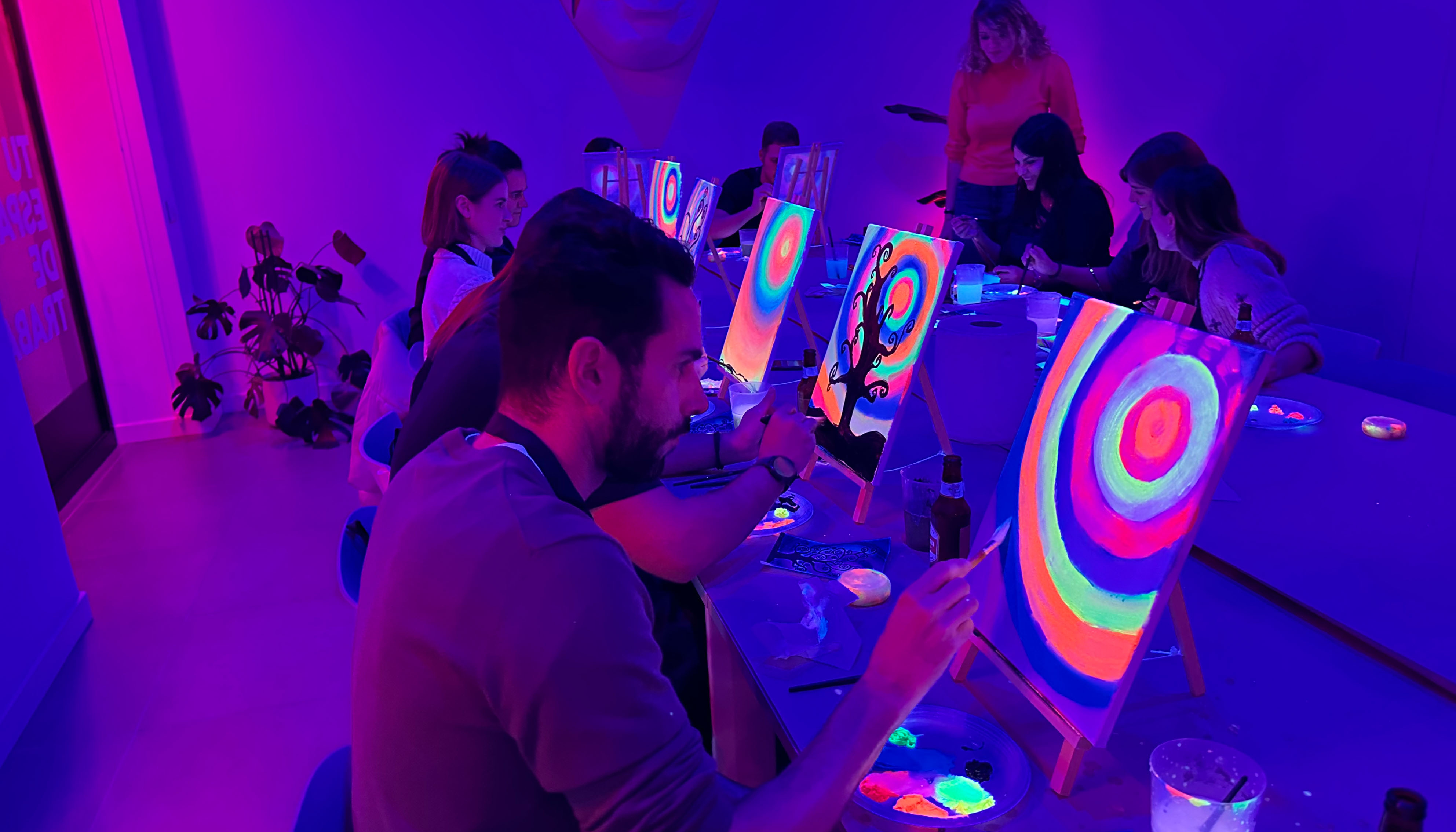 Adéntrate en el mundo de la pintura neón pintando tu propio cuadro fluorescente mientras te dejas llevar por la música para crear tu obra maestra. Aprende de la mano de artistas expertos, que te ayudarán en todo momento, sin importar si es la primera vez que pintas o si eres todo un Da Vinci. Disfruta de cerveza ilimitada para mantener fresca tu creatividad durante toda la experiencia, con opciones sin alcohol y para celiacos. Comparte la diversión con quien quieras, con opciones para 1 o 2 personas.