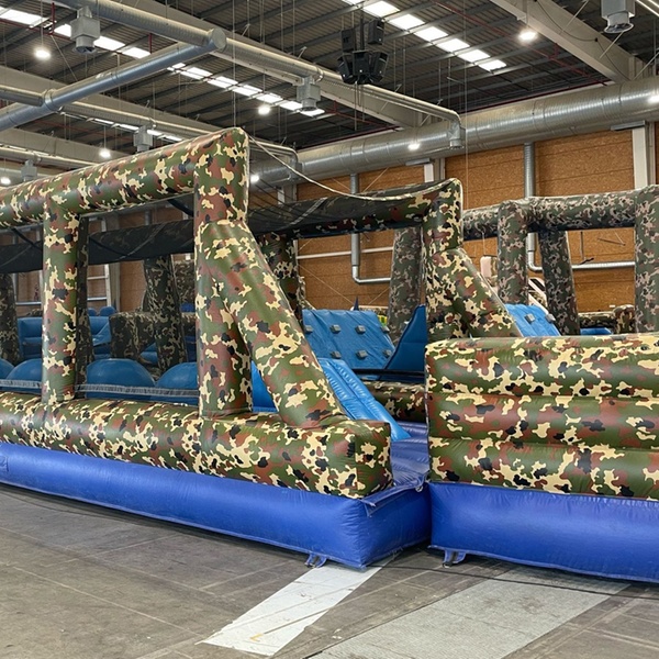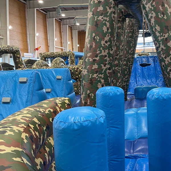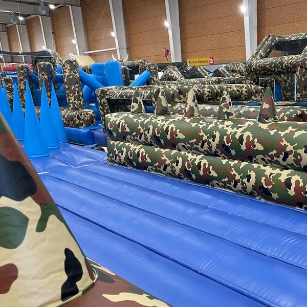 • Un desafío inflable gigante: enfréntate a obstáculos de gran tamaño, diseñados para saltar, escalar, deslizarte y superar tus límites.